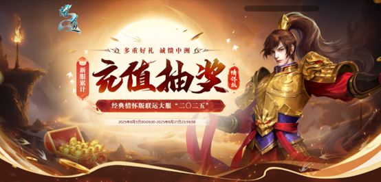 经典版情怀联运大服“二〇二五”累计充值抽奖活动已经开启,多重福利,诚馈中洲!活动期间,在新服“二〇二五”累计充值至指定额度,不仅可获得丰厚的累计充值礼包,还有机会抽到武力值超群的热门神宠!具体的奖励都有啥?往下看!