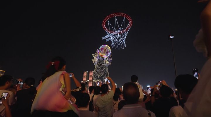 这一次,千架无人机在长江与嘉陵江交汇处腾空而起,以山城地形为画布,对外展示重庆风采的同时,也勾勒出《无畏契约》的“皮蛋”造型,后者向库里和全体观众大秀空中投篮与晚安礼,演绎球场激战与《无畏契约》元素融合的奇妙场景。在现场观看的库里开怀大笑,并向夜空中的皮蛋回敬同款晚安礼!