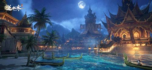 新场景南陀岛的植被特效、气雾特效与风的联动效果极佳,棕榈叶片层叠起伏如绿浪翻涌,夜市灯笼穗带摇曳成流霞,海滩雾气遇礁石分流绕行。风与物的互动,在此达到技术美学新高度,欢迎各位同门体验。