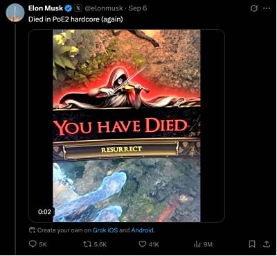 事实上,《流放之路:降临》吸引大佬关注,早就不是什么秘密了。正如开头所说,特斯拉CEO埃隆·马斯克就曾在社交媒体分享过自己游玩国际服的经验,还曾经自嘲“专家模式屡屡翻车”却依然乐在其中。