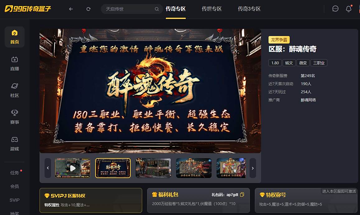 有玩家说,爱传奇,是因为传奇的世界,像极了古代绿林江湖,拉帮结派横扫,眼神不对就动刀,打不过就召集帮派,再来个英雄大会。侠义之气经久长在,岁月不败豪迈情怀。如今,如“醉魂传奇”这样的新颖服,以小博大拓展无限玩法,给足了玩家豪情在Z世代的无限探索空间。赶紧下载996传奇盒子搜索“醉魂传奇”进行体验吧。996传奇盒子拥有海量传奇好服,每日上新,176复古、合计、沉默、冰雪、火龙、超变各类玩法,应有尽有,不容错过。