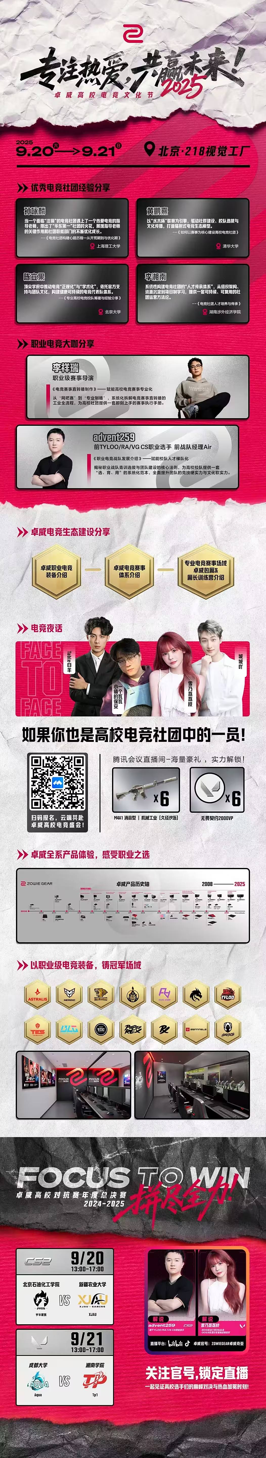 同时,我们还将针对同学们在直播中提出的问题设置“电竞夜话”环节,点对点地回应大家的关切与疑惑,与大家线上线下一起交流。