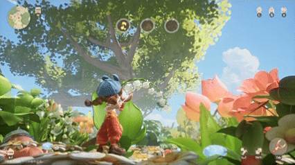 建造机制也跳出传统“盖房种田”框架,主张“万物皆可造”:用饼干铺地、气球作亭、牛奶盒盖房,一切生活中熟悉的物件都可以被纳入自己的小家园。探索采集也同样充满惊喜——射击铃兰收集花蜜、攀爬花朵收集种子、将阳光和微风统统收进天气瓶,处处呼应“小而奇”的世界观。