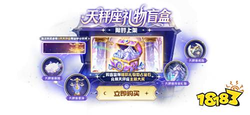 天秤座礼物盲盒限时上架,购买得随机礼物和占星石,兑换天秤座主题大奖,亲启盲盒,解锁好礼!