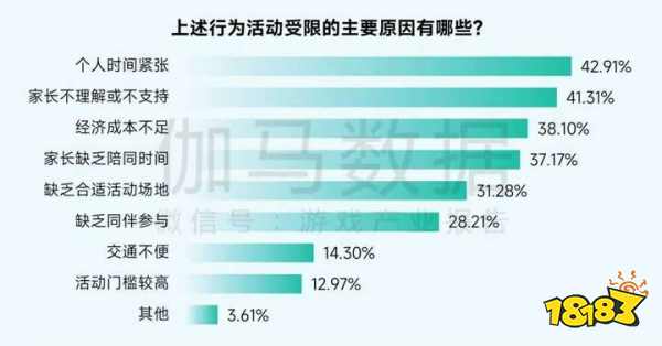 然而,调查也反映出,个人时间紧张、家长理解与支持不足等因素,以及经济成本、陪同参与、活动场地等方面限制,仍是当前阻碍未成年人发展线下兴趣爱好的主要现实瓶颈,需通过家庭、学校、社区等社会各方协同,共同寻求系统性支持与解决方案。