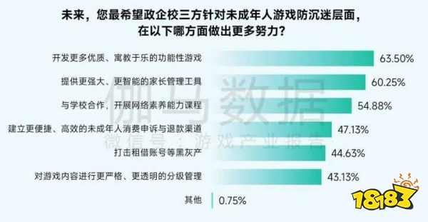 家长问卷结果表明,受访家长普遍期待政府、企业与学校等相关第三方主体能够在开发更优质的游戏内容、提供更强大、更智能的家长管理工具,以及合作开展网络素养教育课程等方面进一步发力。随着我国游戏行业未成年保护工作持续深化,各方也在积极响应,共同推进相关举措落地。