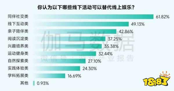 上文提到,有29.70%的受访学生选择游戏是因为“缺乏其他娱乐方式”,而多样化的线下娱乐能够引导未成年人从根本上减少线上娱乐沉迷行为,不仅在于对时间和注意力的简单占用,更在于满足青少年在现实中常被忽视的核心需求,从而降低其对虚拟世界的过度依赖。具体而言,认为同伴社交类(如和同学/朋友逛街、看电影、聚餐、结伴出行等)可以作为替代性选择的受访学生最多,线下互动类(桌游、卡牌、跑团、剧本杀、密室逃脱等),以及亲子陪伴类也在一定程度上受到青睐。