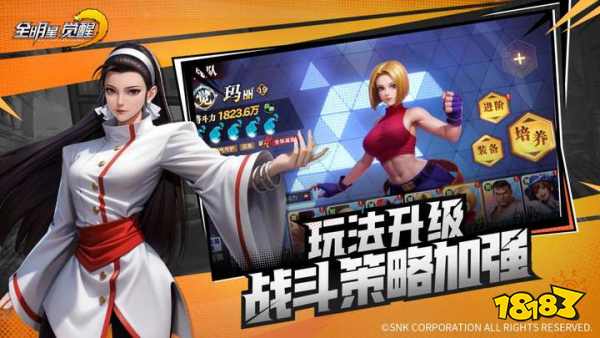 《全明星觉醒》集结了SNK旗下一众IP的众多角色,从八神庵、草薙京到不知火舞、橘右京、娜可露露,每一位角色都保留了独特的技能体系和大招特效。