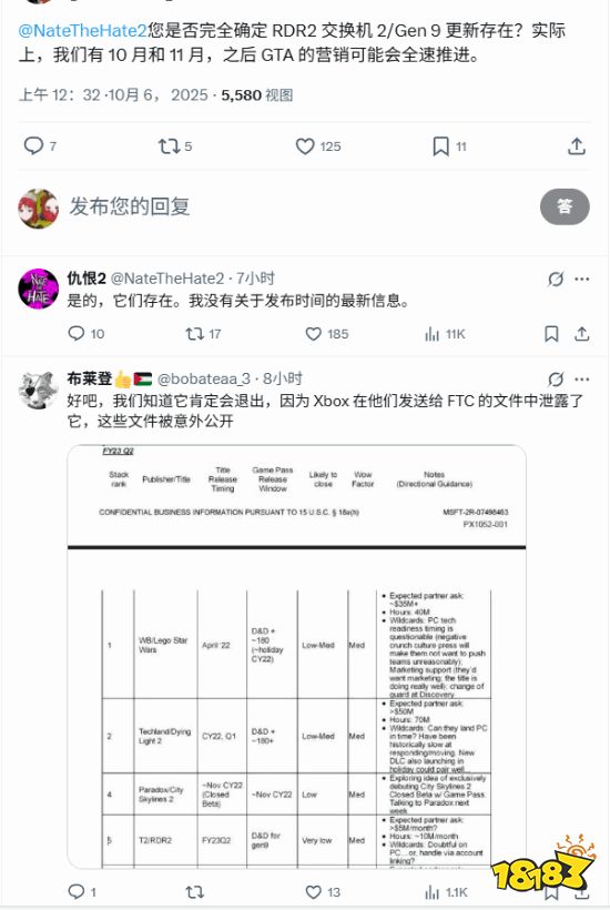 - 有力证据: 评论区曝光的一份 Xbox 内部文件 进一步佐证了 Rockstar Games(R星)曾就该作的次世代适配进行过深度规划。