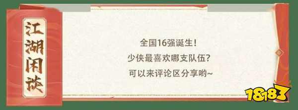 因此,我们将在决赛前夕,正式开启赢者留其名特别活动——届时,所有少侠均可为你心中的队伍投票。得票最高的队伍,将获得官方独家专访,他们的故事将被永久铭刻,真正做到赢者留其名。