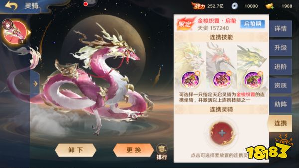 金梭织霞将开放灵骑连携功能,守护使可从九皋玄翎、金毛犼、山岳潜形中选择一个激活对应灵骑效果,大幅增强其战斗属性。详细效果还请前往游戏内查看~