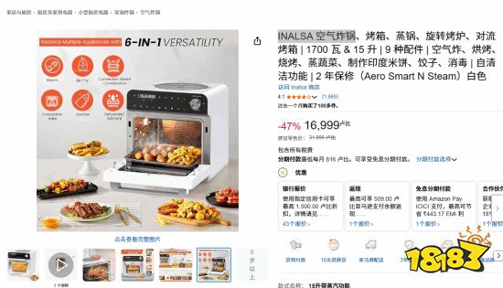 近日,国外INALSA品牌一款空气炸锅在社交平台引发热议,原因并非功能多“黑科技”,而是商店详情页的一张宣传图意外抢镜。该产品在介绍“蒸汽(Steam)功能”时,宣传图旁边竟直接放上了Valve旗下Steam游戏平台的标志,导致不少网友第一眼以为它和游戏平台存在联动。