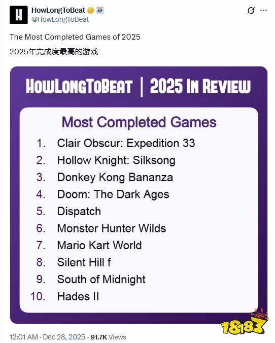 由于《光与影:33号远征队》属于偏剧情推进与成长培养的角色扮演类作品,主线流程通常更长、投入时间更高,能够拿下“完成度第一”的名次并不容易。但在相关动态评论区,也有不少玩家对统计口径提出疑问,例如“完成度具体指什么,是主线通关率还是全成就?”“样本数量与统计范围为何未标注?”等,关注点集中在指标定义与数据透明度上。