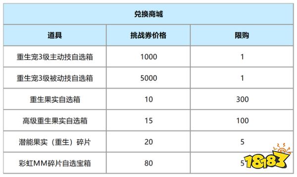 彩虹MM碎片自选箱彩虹MM碎片自选箱 宝箱可开出3+1彩MM碎片自选,在原有【暴龙系·帖拉所伊朵】、【老虎系·金格萨贝鲁】、【飞龙系·朵拉比斯】碎片基础上,新增【GP系·鲁比】彩虹MM碎片。收集“彩虹MM”是达成宠物“转生必彩”的关键途径,能确保符合条件的宠物转生后必定获得彩色品质,是追求顶级宠物的玩家梦寐以求的道具。