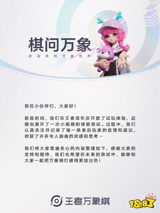首先是标志性栏目《棋问万象》将全面升级转型为视频日志形式,以更生动、真实的方式,同步开发进展、解读设计逻辑,并对玩家反馈给予更直接、透明的回应。