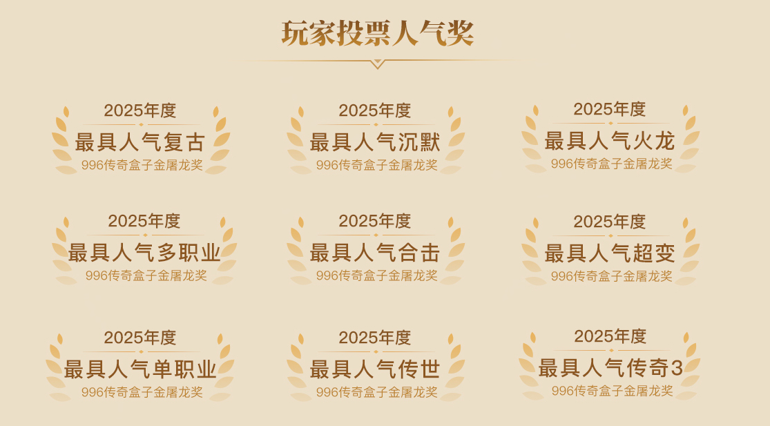 2025年接近尾声,一年一度“传奇界的奥斯卡”盛宴又将如期开启,由996传奇盒子主办的“金屠龙奖”年度评选盛典,将在2026年1月6日正式拉开帷幕,让每一位传奇玩家都能参与其中,用自己的喜好为情怀加冕,选出最众望所归的那一款好服。