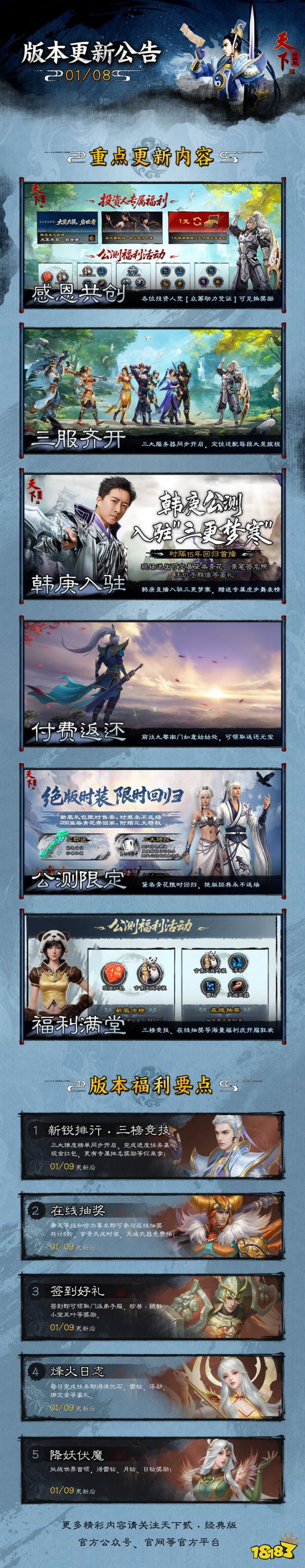 今日中午12点,《天下贰·经典版》即将正式开启公测,迎接少侠们回家。小天天已为大家准备了更新公告的要点图,助大家更快掌握资讯~前往官网可查看详细公告:https://tx2classic.163.com/news/update/20260108/43135_1280909.html