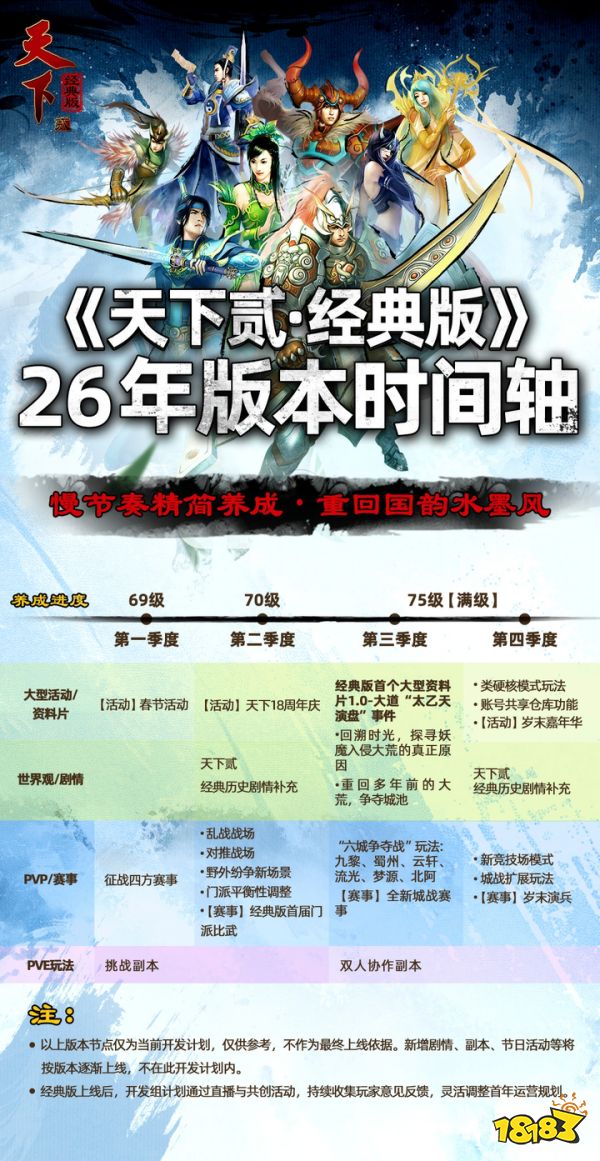 我们也向少侠们公示一下当前阶段关于《天下贰·经典版》首年开发规划,大型资料片、PVP赛事、世界观剧情补全……海量更新内容正在一一推进,敬请期待。
