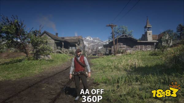在本次对比测试中,荒野大镖客2仅以360p的内部渲染分辨率运行,随后通过DLSS 4.5的Preset M模式放大至720p输出。结果显示,其画面细节表现依然出色。相比之下,同样以360p渲染,再通过原生TAA技术放大至720p或完全关闭抗锯齿的画面,在整体清晰度与细节完整性上均明显逊色。