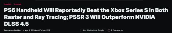 核心配置:4个Zen 6c核心+2个Zen 6 LP核心,16组RDNA 5计算单元,192-bit LPDDR5X内存(24GB),台积电3nm工艺,芯片面积约135mm²。参数已接近入门级主机,意味着掌机将进入高性能时代。KeplerL2指出,Switch 2主要依赖DLSS 2,而PSSR 3有望在画质上全面领先。