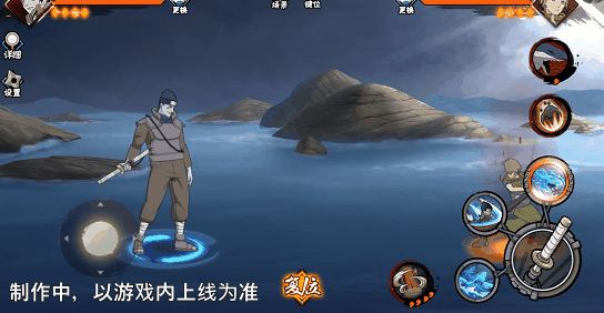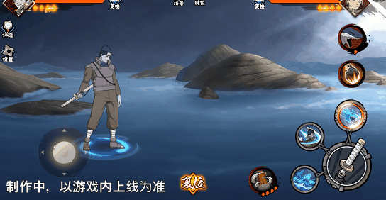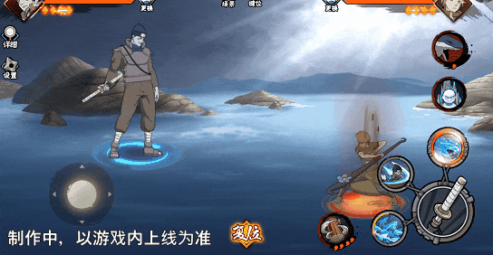 若释放水遁·爆水冲波改变场景为水上作战,2A、3A后摇时均可下拉摇杆并普攻,青年鬼鲛潜入水中一段时间,期间可自由移动,随后乘浪钻出,在浪上时可继续普攻打出水上4A,随后踏浪跃至空中反手落地斩击,命中则附加流血效果。