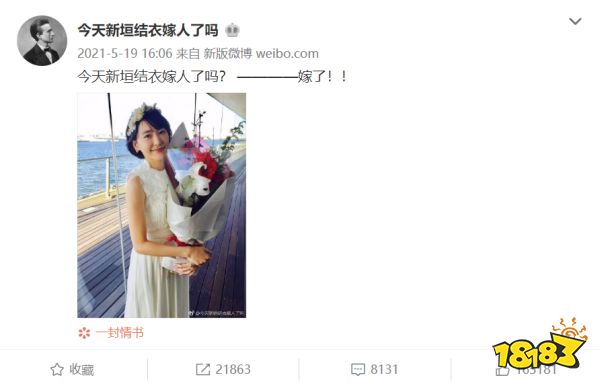 从 2018 年开始连续三年打卡“今天新垣结衣嫁人了吗”的微博,发完“嫁了”微博后停更了一年多: