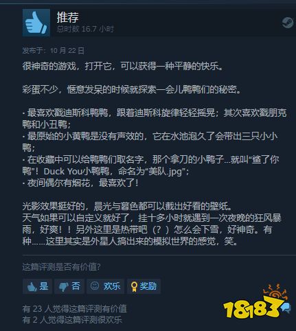 所以说到这里,我想大家或多或少能够理解,为什么这款没有任何玩法的游戏,能获得99%的好评比例。