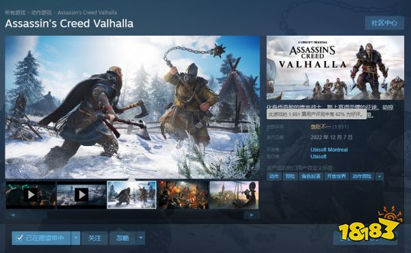育碧宣布回归Steam的3A大作《刺客信条:英灵殿》。