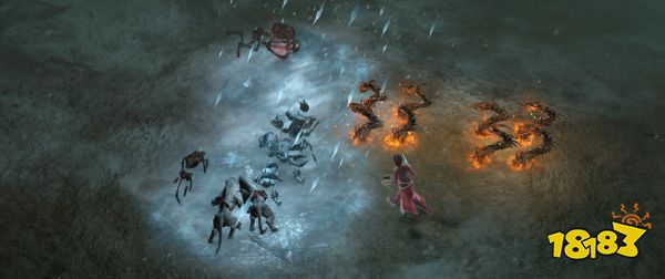 画风向着传统回归之后,游戏的物理反馈、击杀效果等也做了相应的调整。前作里那种一个爆炸性技能砸下去,尸体凭空飞起几丈高而后落下的夸张场面没有了。取而代之的是更为写实的击杀效果:火焰焚烧后残留的尸骸、被冰系技能冻住的躯体以及碎冰的爆炸、物理性质击打造成的断肢、血溅……这些在次世代的技术支持下有了更逼真的表现。
