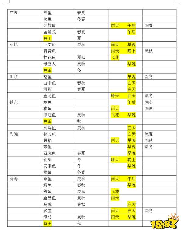 本次给大家带来的是奶牛镇的小时光中钓鱼的地点及季节时间相关汇总表,游戏里能够钓的鱼还是比较多的,也有很多是限定鱼,只有特定的时间或者特定的季节甚至特定季节的特定事件才能钓到,下面就给大家汇总一下。
