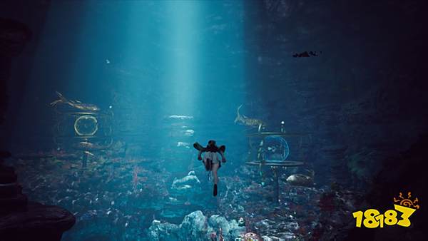 阳光直射入深深的海底洞穴,同样使用了RGWC水焦散技术在礁石上映衬出海水的焦散波纹,让玩家在海底潜泳时的体验更加身临其境。