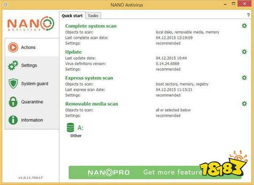 NANO AntiVirus是一款俄罗斯出品的杀毒软件,这款国外免费杀毒软件与其他的杀毒软件不同的是这款杀毒软件采用了纳米技术;总所周知,纳米是一个非常小的单位;也就是说这款杀毒软件能够扫描到系统的任何一个地方,让病毒无路可逃。