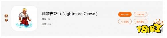 战斗中增加自身抗暴率;噩梦吉斯每回合开始时获得复仇之力,初始获得12%伤害免伤,第一回合起每回合提升6%,最高提升至30%,每回合体型扩大,最多扩大3次;噩梦吉斯每次击杀对方格斗家,获得强化(恢复自身15%最大生命值,清除自身异常状态,1回合内免疫负面状态,首次击杀时直接获得全部复仇之力);每回合敌方随机一名格斗家陷入噩梦,持续1回合,噩梦吉斯登场时,若敌我双方均仅一人,则此效果不生效;噩梦吉斯免疫噩梦;噩梦吉斯受到重击时(单次伤害超过最大生命值的30%),获得1层复仇之力,并标记攻击者为复仇目标,下一回合开始时,优先给攻击者添加噩梦;任意敌方格斗家在噩梦狀态时阵亡,噩梦吉斯获得全部复仇之力