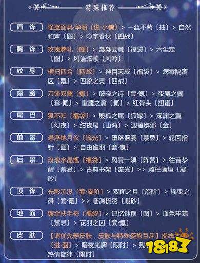 推荐技能:飞吻 微笑 免挑 沉睡