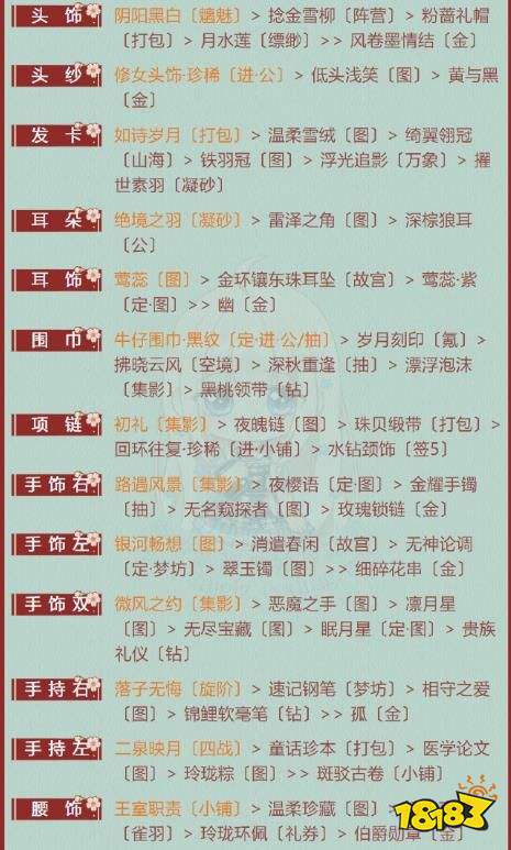手饰·双:微风之约〔集影〕> 恶魔之手〔图〕> 凛月星〔图〕> 无尽宝藏〔图〕> 眠月星〔定·图〕> 贵族礼仪〔钻〕