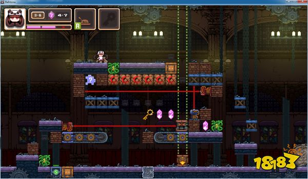 收集宝石和钥匙,在图示位置留下两个幻象。开门进入门内世界。