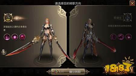 选择剑士的玩家完成转职任务后,可以向“灵剑士”、“狂剑士”两个方向发展。