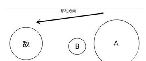 第一步:如上图,我方A需要吃掉敌方,个人模式下如果使用四分直线秒合会直接把你的合作队友吃了,此时可以利用旋转分身的方法,来实现加速移动靠近敌方。
