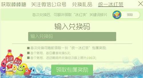 在球球大作战中,与统一冰红茶携手推出的全新活动开盖赢光环闪耀波拉哩来袭,那这个活动中,只要你打开瓶盖有12位数的兑换码,那就可以获得奖励,但是注意一点,那就是这个冰红茶的奖励兑换是有上限的:每个账号每日最多兑换5次,总次数上限是100次。