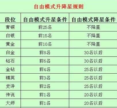 1、在自由模式中排名前4名,加1星;未达到前25名,减1星。