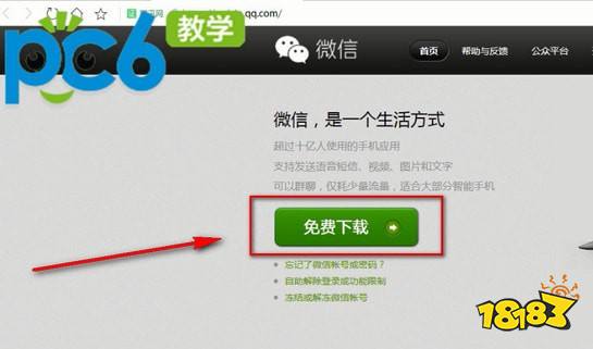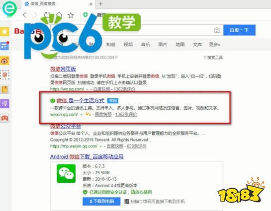 1.打开浏览器,输入“微信”搜索,打开红框选中的这一个