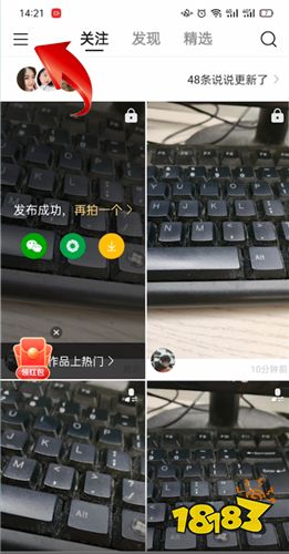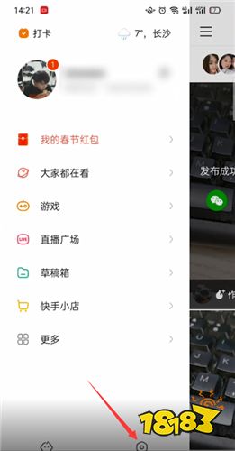 打开手机快手,点击左上角三条横线,
