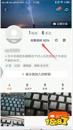 点击编辑资料或完善资料,