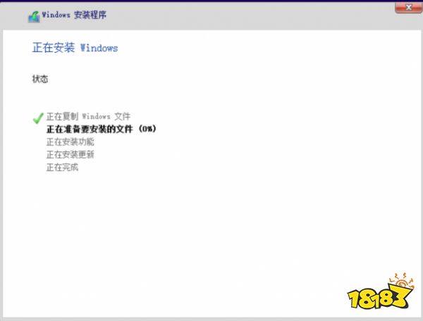 5、现在就是等待时间,Windows会将安装文件解压缩到磁盘上,此处不需要我们干预,