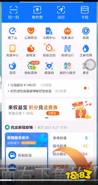 1.打开支付宝APP,点击首页界面右下角的【我的】。
