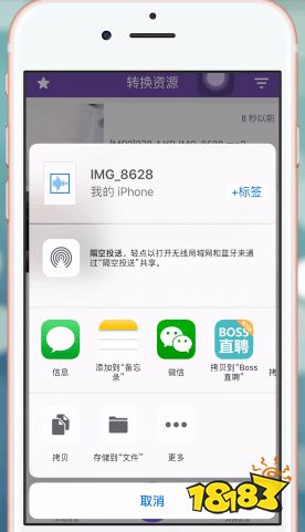 点击“视频”,选择“在应用中打开”,选择“拷贝到微信”-“发送”给朋友;