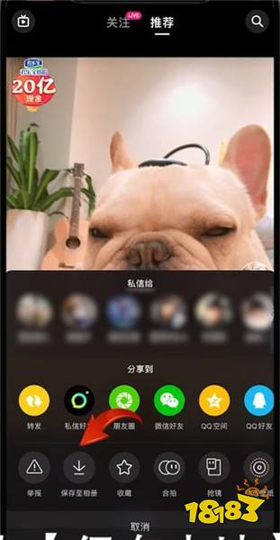 目前抖音短视频不支持全屏观看功能,如果需要观看全屏的视频,可以通过下载视频,然后在本地进行观看。打开一个视频,点击右下角【分享】图标,再点击【保存本地】即可。
