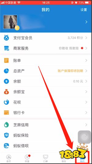 首先打开【支付宝】客户端,然后点击右下角【我的】;