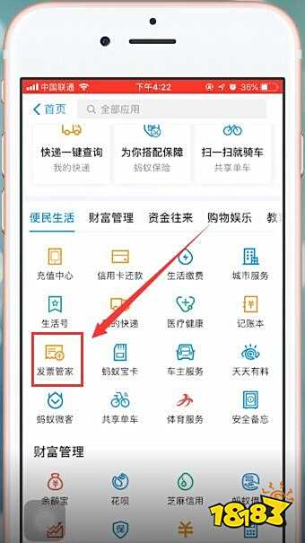 接着在便民生活中找到【发票管家】,这时就能看到自己支付宝所开的电子发票啦