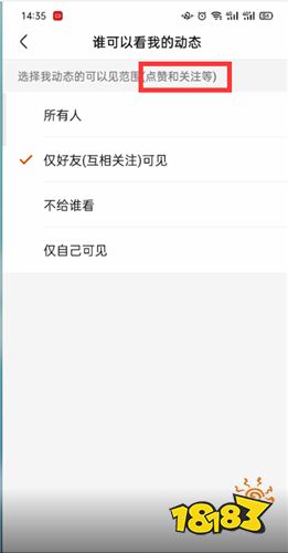 在里面就可以选择动态可见范围,其中就包括点赞,